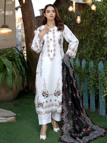 Gulbadan – 3PC Cotton Embroidered Suit (Semi-Formal)
