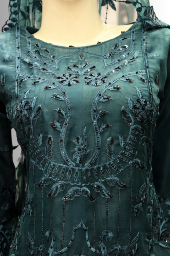 Noor-e-Seher | Deep Teal Embroidered Formal Dress – Laila Majnun