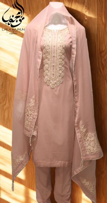 Gul-e-Hina | Blush Pink Embroidered 3-Piece Ensemble – Laila Majnun