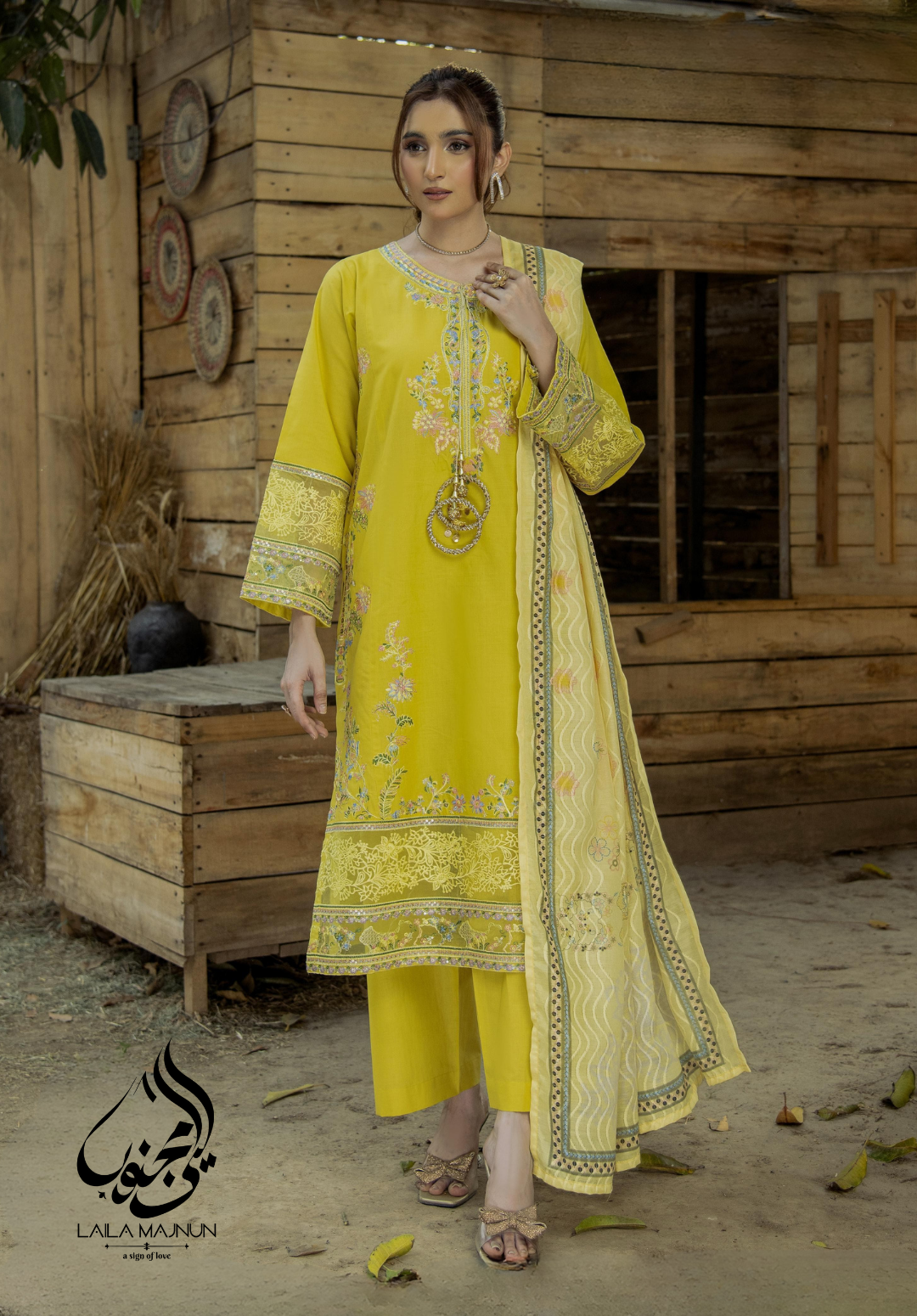 - Zarnish-e-Bahar | Yellow Luxury Embroidered 3-Piece Suit – Laila Majnun