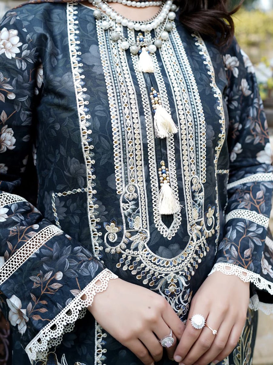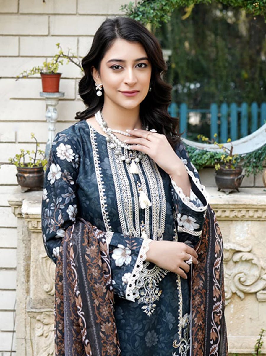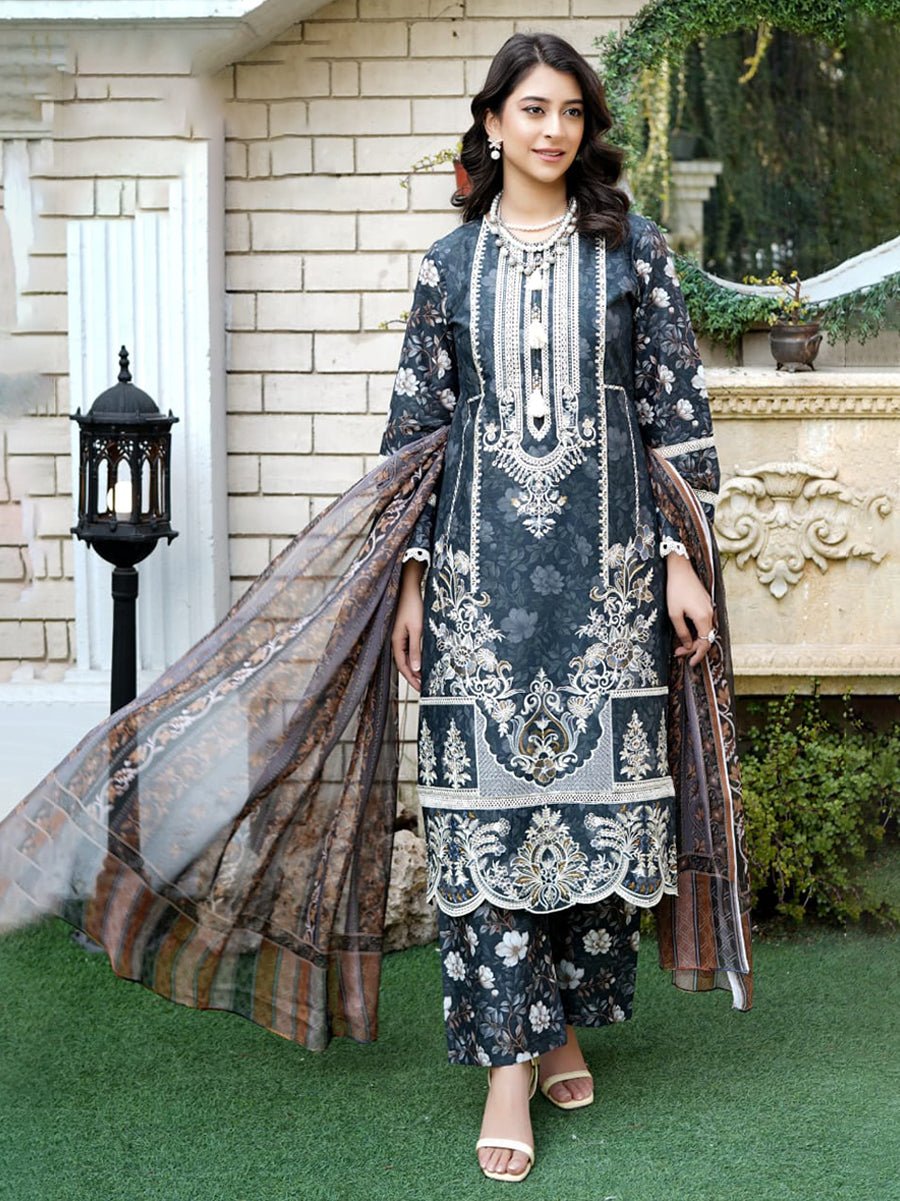 Nausheen (نوشین) in a delicate Zinc tone embodies timeless elegance and understated beauty. This 3-piece cotton suit is crafted with both comfort and style in mind, featuring a soft cotton shirt that ensures a comfortable and breathable fit throughout the day. The plain cotton trouser adds a polished touch, creating a clean, sophisticated silhouette.