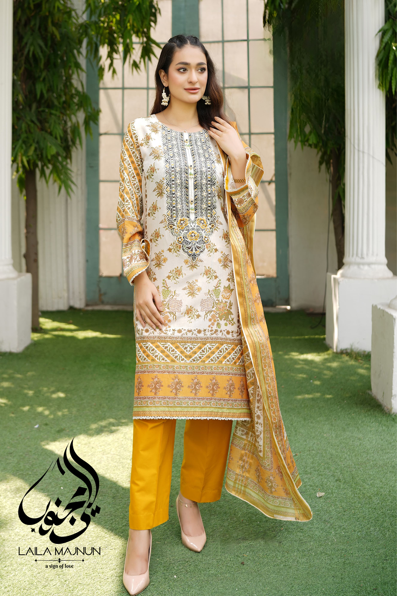 - Zarnish-e-Bahar | Yellow Luxury Embroidered 3-Piece Suit – Laila Majnun