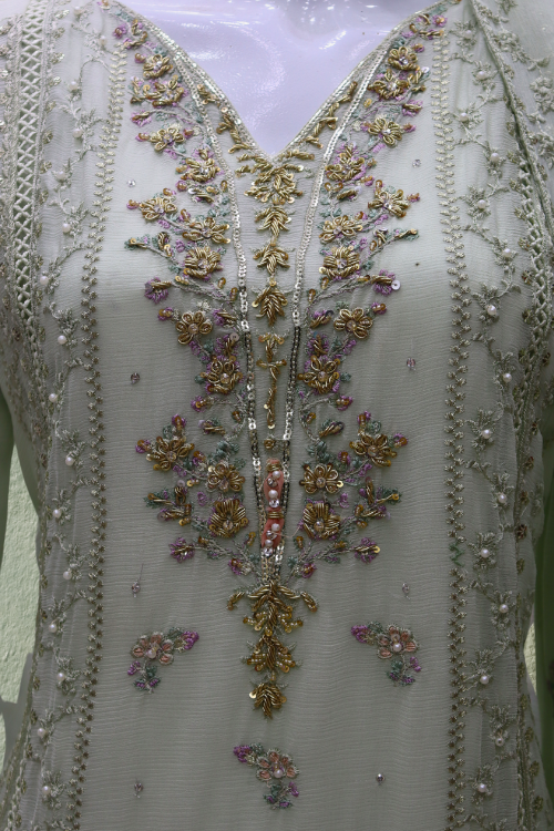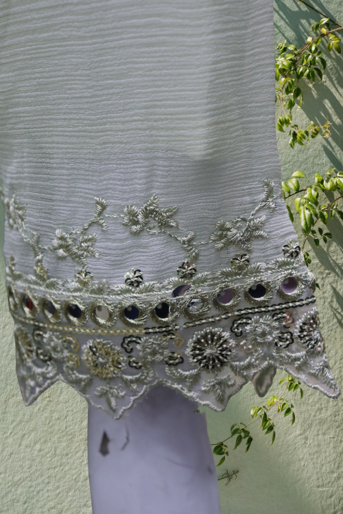 - Chiffon Dupatta Design: Handcrafted Floral Embroidery Color: Soft White with Hints of Pastel Occasion: Festive | Formal | Semi-formal