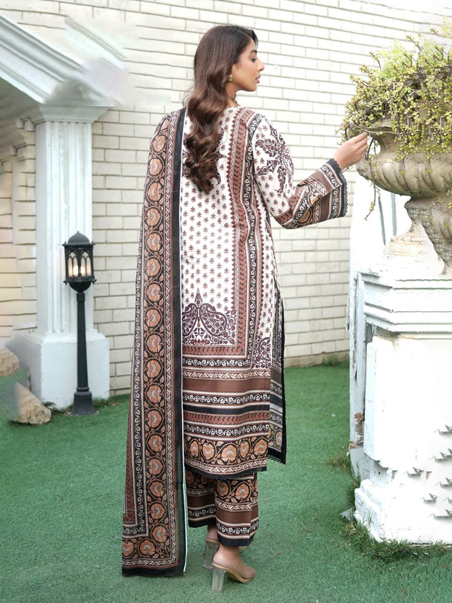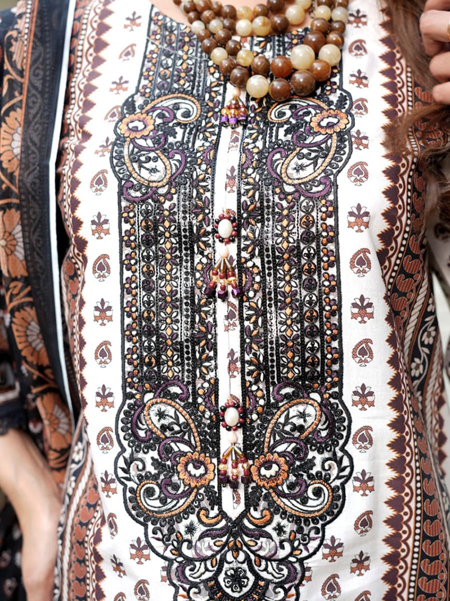 Zar Gul (زر گل) in a delicate Cream tone embodies timeless elegance and understated beauty. This 3-piece cotton suit is crafted with both comfort and style in mind, featuring a soft cotton shirt that ensures a comfortable and breathable fit throughout the day. The plain cotton trouser adds a polished touch, creating a clean, sophisticated silhouette.
