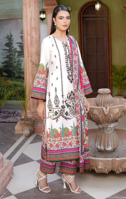 Zarmin – 3PC Lawn Cotton Embroidered Suit with Lawn Dupatta
