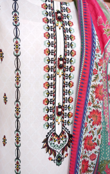 A pristine white canvas brought to life with vibrant floral embroidery — Zarmin is your perfect pick for a fresh, radiant summer look!