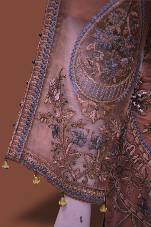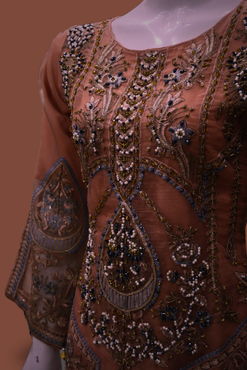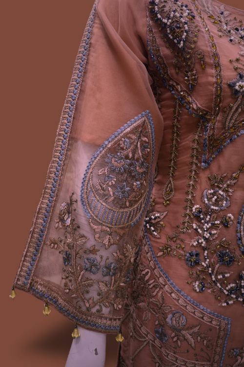Zehra-e-Gulnaar | Copper Embroidered Luxury Formal Suit – Laila Majnun